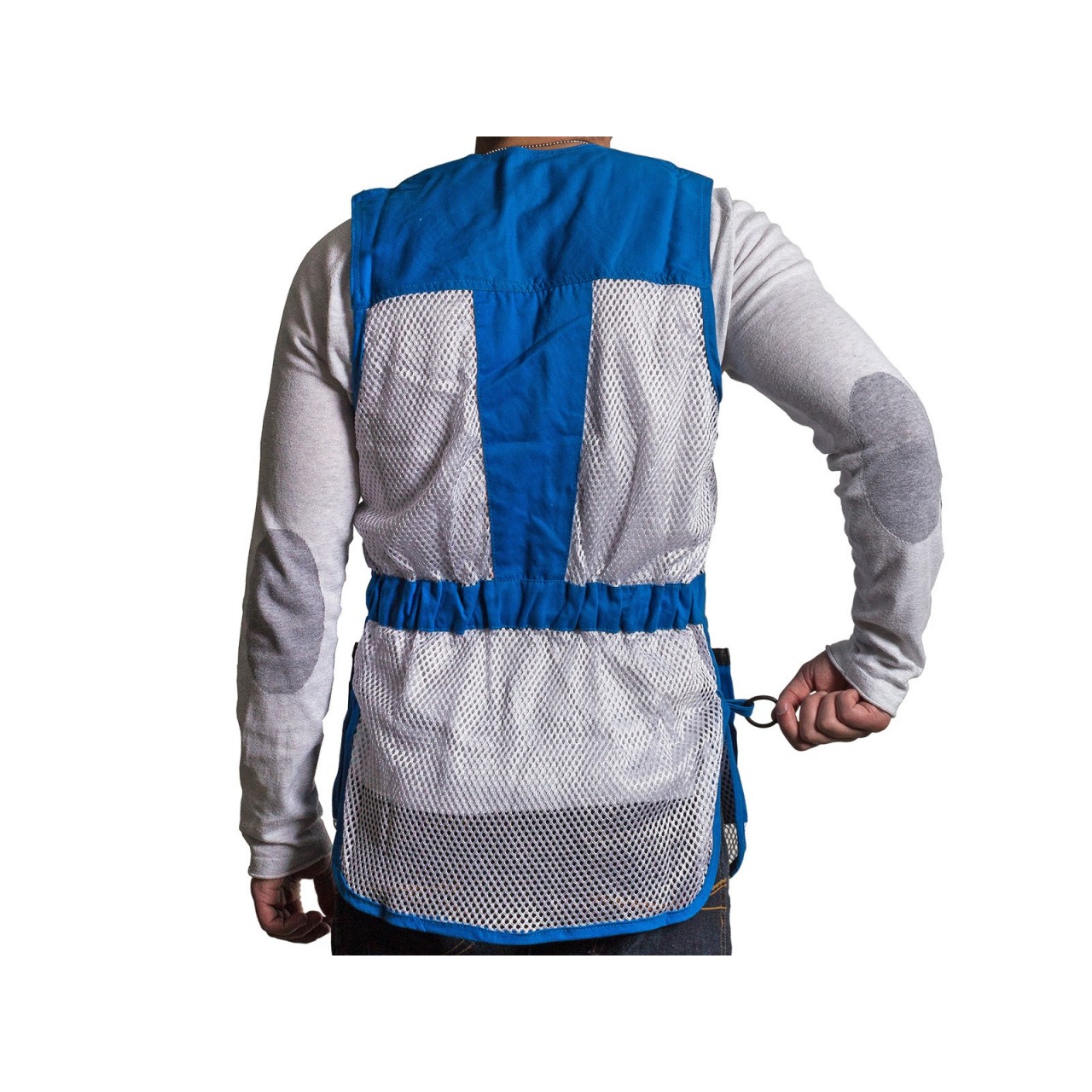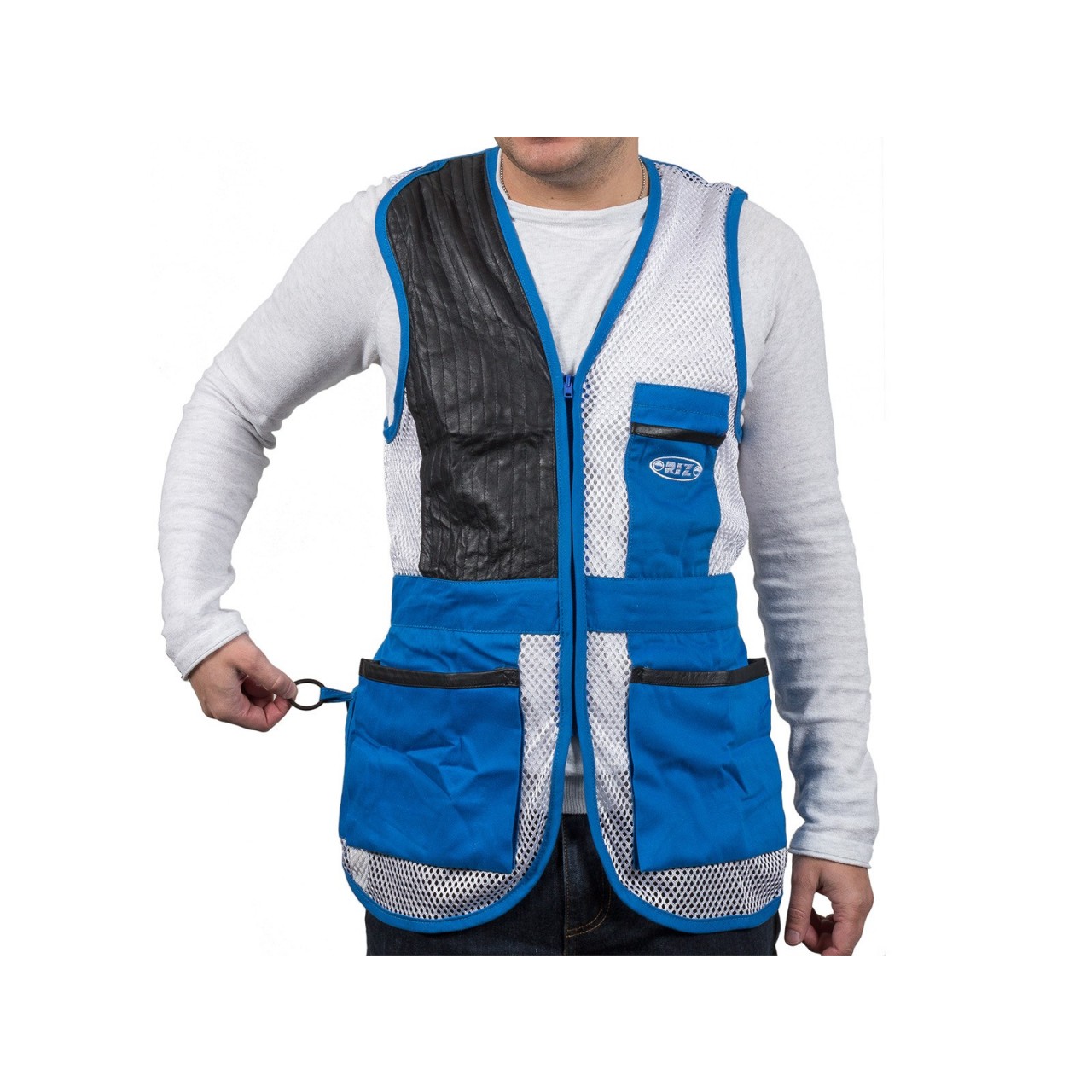 Gilet Marchiato Orizo realizzato in 100% poliestere tessuto a rete e tessuto 100% cotone da 240 gr/mq. Paracolpi in pelle che assicura adeguata protezione contro il rinculo e impunture antiscivolo, con uno spacco sulla parte superiore della spalla che consente maggiore spazio per l?appoggio del calcio del fucile. Ad altezza vita si trova un cinturino in tessuto di cotone che sul giro schiena contiene un elastico che permette, assieme agli spacchetti laterali, di ottimizzare la vestibilità. Chiusura frontale per mezzo di una zip a scomparsa, con due robuste e ampie tasche laterali a soffietto, bordate in pelle, che consentono di contenere un gran numero di cartucce e con, sulla parte sinistra sopra al cinturino, un taschino porta oggetti anch?esso bordato in pelle. Sul retro, in posizione che segue la colonna vertebrale, si trova una fascia di rinforzo in tessuto di cotone così come dello stesso materiale è composta la fascia che va dalla nuca alle spalle, spazio ideale per ospitare eventuali ricami personalizzati.