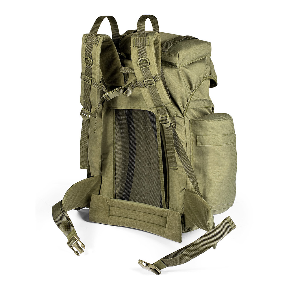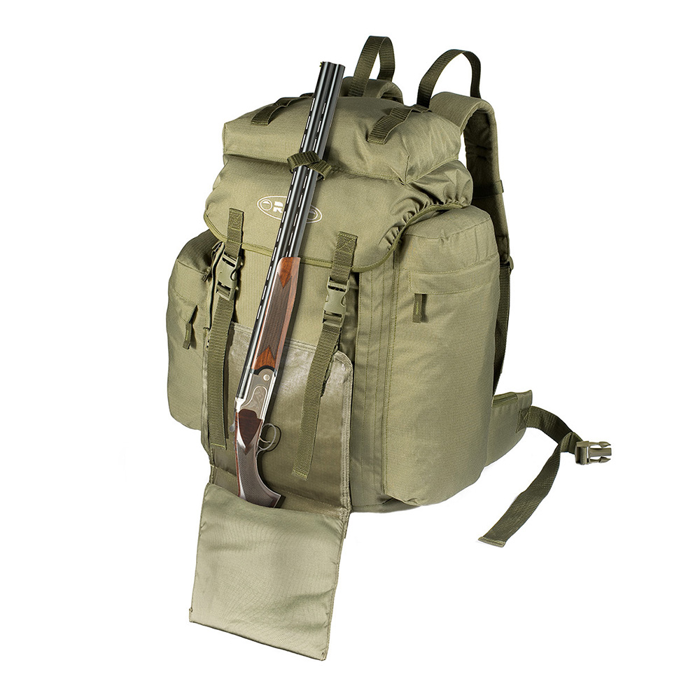 Zaino particolarmente adatto per essere usato come carniere per specie di selvaggina anche di grande pezzatura (capriolo, camoscio, cervo, cinghiale, ecc.) grazie alla possibilità di aumentarne la capacità aprendo la zip e il velcro posti sulla parte frontale ed estendendo il sacco impermeabile interno. Molto versatile, ben si adatta alle più disparate situazioni e necessità di trasporto. Prodotto tecnico per la caccia, capacità 70 litri, in resistente Cordura 600 D PU. Il dorso è fornito di un sistema di ventilazione che permette di mantenere un?ottima aerazione della schiena a contatto con il bastino, grazie a speciali tessuti in rete che creano una distanza fra il portatore e lo zaino e consentono una notevole riduzione della sudorazione con una conseguente maggiore sensazione di freschezza. Spallacci e cintura a vita imbottiti e regolabili, cinturino pettorale, tascone laterale imbottito porta binocolo, tascone porta fucile, doppia tasca sul cappuccio. Dotato di sacco interno impermeabile estendibile estraibile.