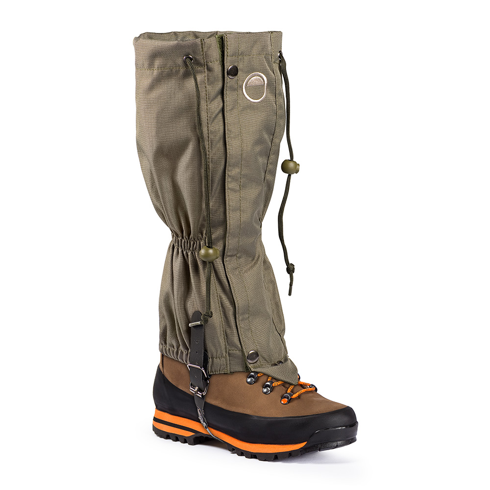 Ghetta tecnica Marchiata Orizo antirumore in resistente Cordura Rip-stop impermeabilizzata mediante spalmatura di PU. Ha chiusura frontale per mezzo di cerniera YKK e velcro, elastico al tallone e al polpaccio, cordino di restringimento sulla parte superiore, cavetto sotto tacco in acciaio e regolazione mediante cinturino in robusto tessuto di nylon spalmato da entrambi i lati in PVC. TAGLIA UNICA ALTEZZA: 40 cm