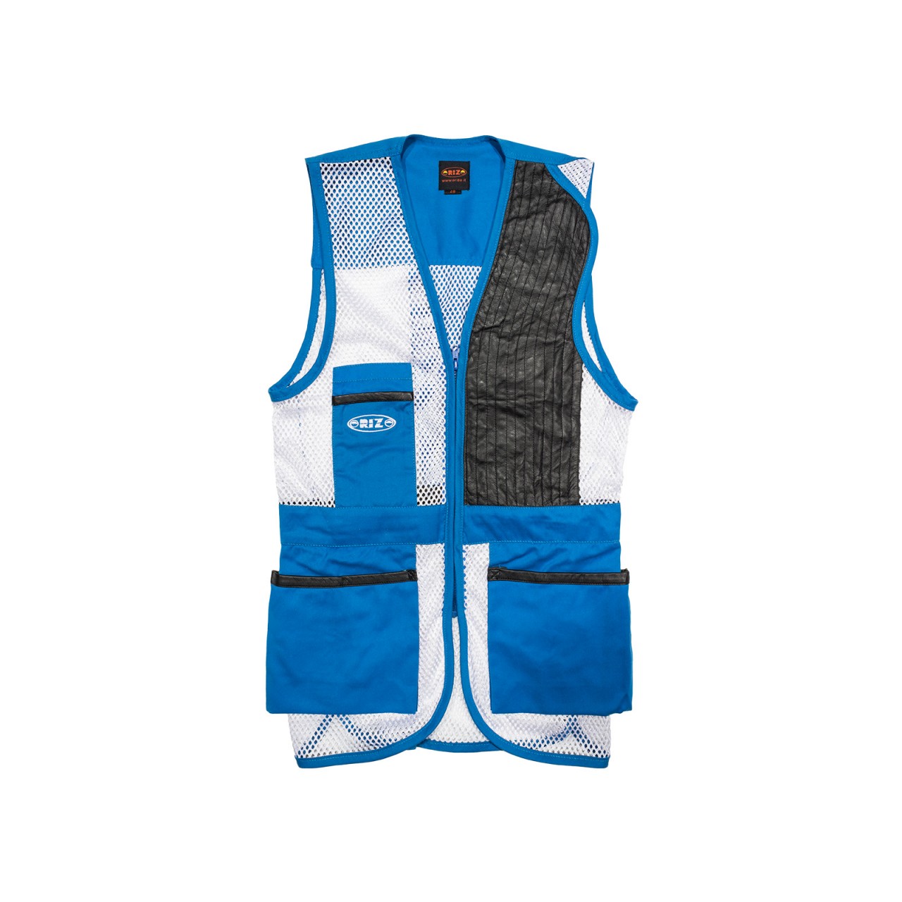 Gilet Marchiato Orizo realizzato in 100% poliestere tessuto a rete e tessuto 100% cotone da 240 gr/mq. Paracolpi in pelle che assicura adeguata protezione contro il rinculo e impunture antiscivolo, con uno spacco sulla parte superiore della spalla che consente maggiore spazio per l?appoggio del calcio del fucile. Ad altezza vita si trova un cinturino in tessuto di cotone che sul giro schiena contiene un elastico che permette, assieme agli spacchetti laterali, di ottimizzare la vestibilità. Chiusura frontale per mezzo di una zip a scomparsa, con due robuste e ampie tasche laterali a soffietto, bordate in pelle, che consentono di contenere un gran numero di cartucce e con, sulla parte sinistra sopra al cinturino, un taschino porta oggetti anch?esso bordato in pelle. Sul retro, in posizione che segue la colonna vertebrale, si trova una fascia di rinforzo in tessuto di cotone così come dello stesso materiale è composta la fascia che va dalla nuca alle spalle, spazio ideale per ospitare eventuali ricami personalizzati.